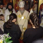 Пред почетак службе Владика је у првине монашког образа обукао послушницу ове свете обитељи Дијану и послушницу манастира Свете Матроне Љиљану.