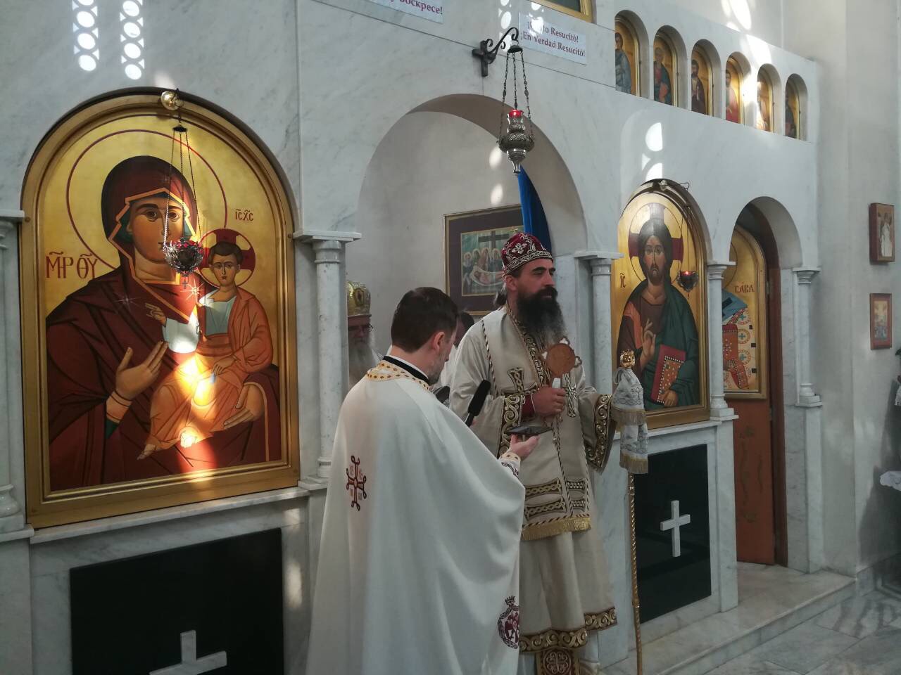 Архиепископ цетињски Митрополит црногорско-приморски г. Амфилохије и господа Епископи изабрани буеносајрески и јужно-централноамерички Кирило и диоклијски Методије служили су данас, на Велику Госпојину Свету службу Божију у катедралном храму Епархије буеносајреске и јужно-централноамеричке посвећеном Рођењу Пресвете Богородице у Буенос Аиресу.