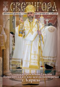 У уводном дијелу 273, октобарског броја „Светигоре“, образника за вјеру, културу и васпитање Митрополије црногорско-приморске оставио је своје поздравно слово Епископ буеносајрески и јужно-централноамерички Кирилo, досадашњи уредник часописа, који је био десет година на његовом кормилу, како каже у свом осврту Оливера Балабан. Сам владика Кирило остаће уписан у историју као први епископ Српске православне цркве за Јужну Америку, на чију катедру је недавно постављен – „Да заиста буде апостол Христа Бога нашега“, „Под Јужним крстом“, како гласе бесједе са његовог устоличења. А ђакон Владимир Јарамаз оставио је записе о догађајима из Јужне Америке тих дана.