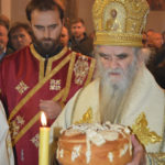 „Његову благу вијест – Јеванђеље да чујемо и примимо у своје срце да нас освети и просвети, очисти и благослови. Да примимо Њега у себе кроз овај свети храм, кроз Духа животворног кога призивамо на свакој служби Божјој да сиђе и освети и на нас и предложене дарове, и учини нас обиталиштима и храмовима славе и силе Божје, силе Духа Светога, а наше дарове које смо принјели, вино и хљеб, да се преобразе и претворе у Тијело и Крв Христову. И кроз њих да нам се открије тајна Бога као истинске љубави, Бога који није тражио да Му служе него је служио и Себе принио, и непрекидно приноси, за живот свијета, дарујући свијету Крв и Тијело Своје, обогаћујући овај свијет Собом као вјечном љубављу и призивајући сав род људски на ту љубав и према Богу и према ближњем који је икона живога Бога.“