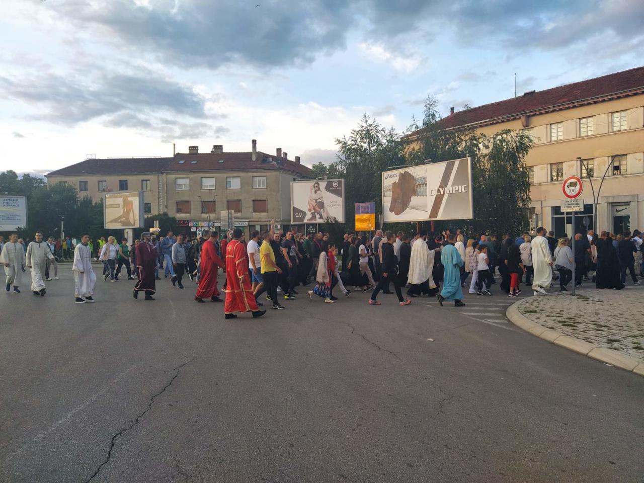 Вечерашња литија се кретала од Храма Христовог Васкрсења, поред старе зграде Владе, Правног и Економског факултета и Далматинском улицом назад до Храма.