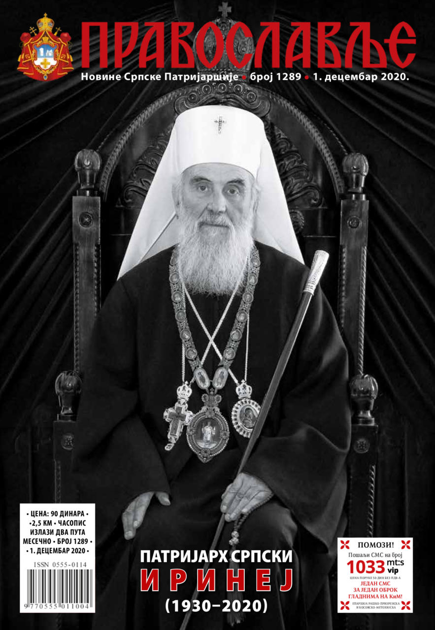 Новине Српске Патријаршије Православље од 1. децембра 2020. године посвећене су блаженоуснулом ПРВОЈЕРАРХУ СРПСКОМ, ЊЕГОВОЈ СВЕТОСТИ ПАТРИЈАРХУ ИРИНЕЈУ