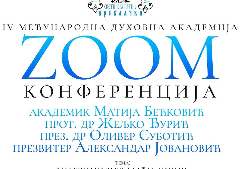 Zoom предавања са IV Међународне духовне академије “Свети Јевстатије Превлачки” можете да пратите УЖИВО путем званичног YouTube канала: https://www.youtube.com/channel/UCpRZtJTSh5EvH2qoEofUuXQ