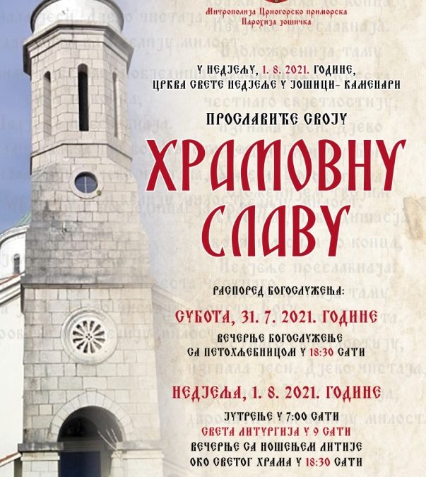 Црква Свете Недјеље у Јошици – Каменари у недјељу, 1. августа, прославиће своју храмовну славу. Света литургија служиће се у 9 часова, а вечерње са литијом око храма у 18,30 часова.