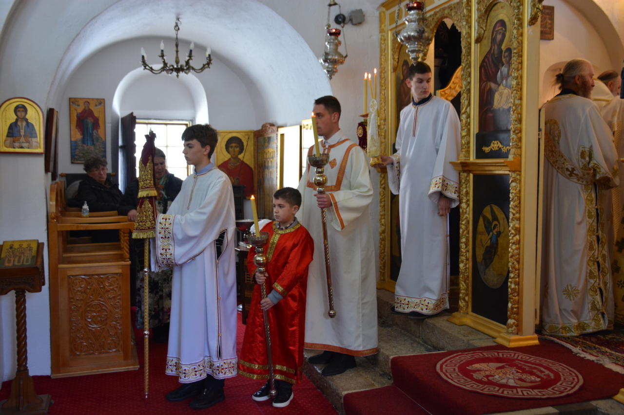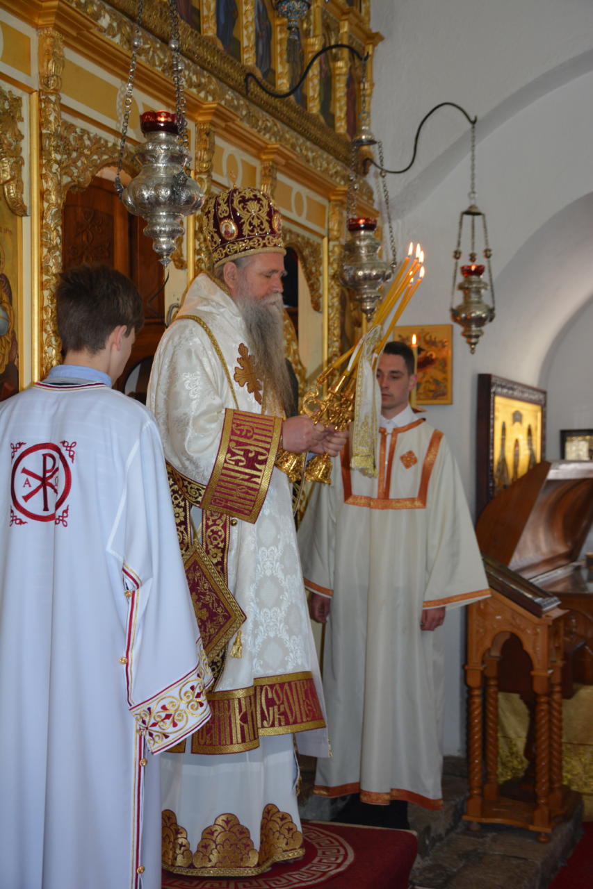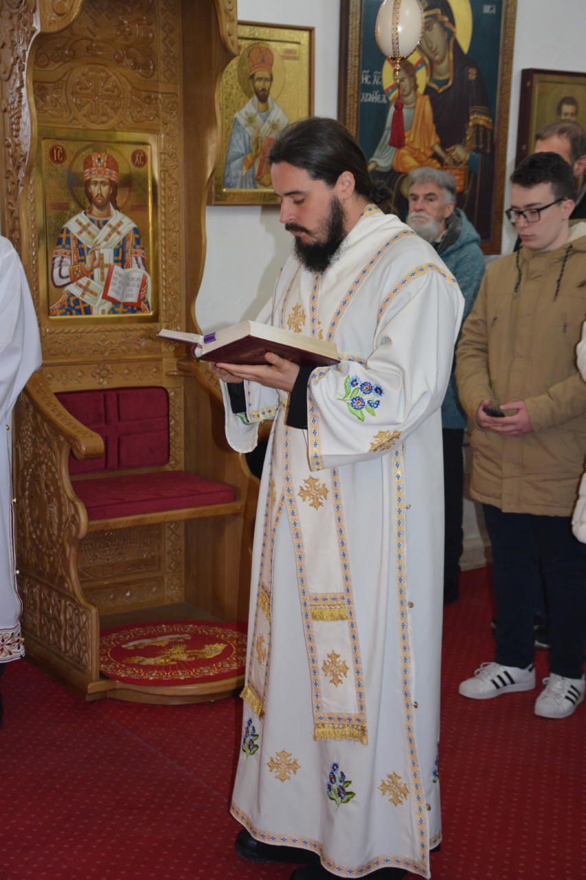 Након читања Јеванђеља бесједио је ђакон Благоје Рајковић, професор Богословије Светог Петра Цетињског.