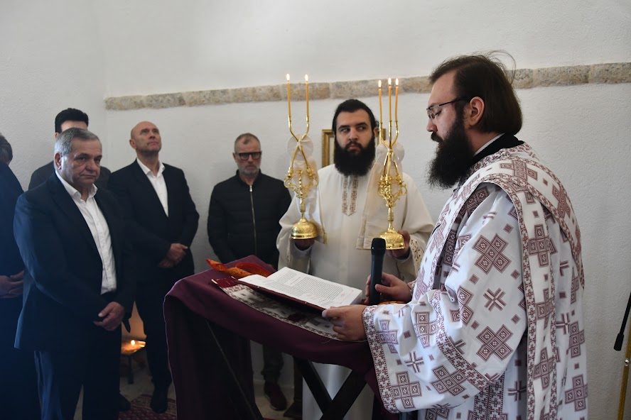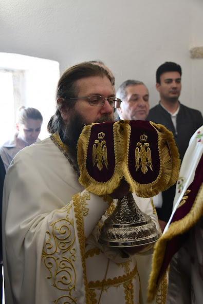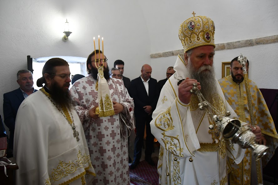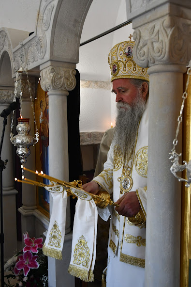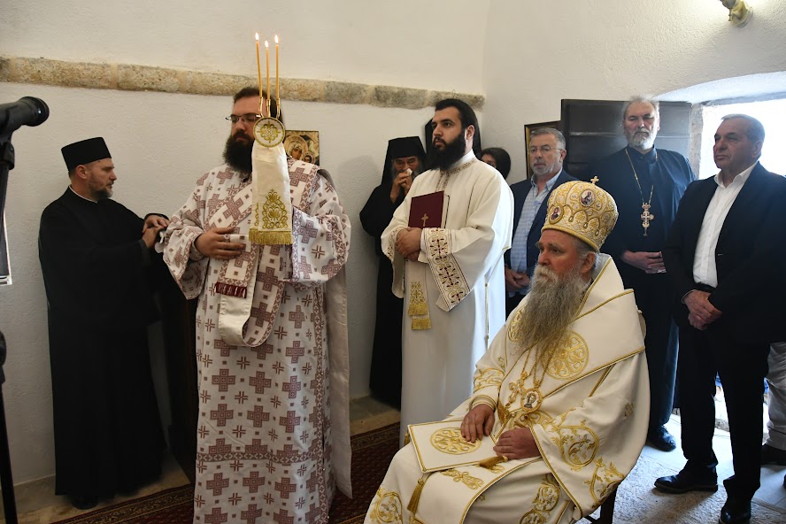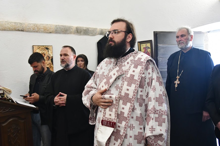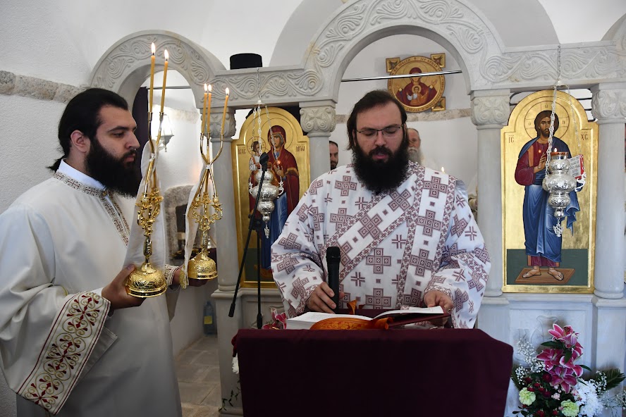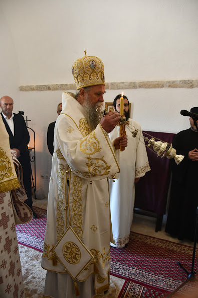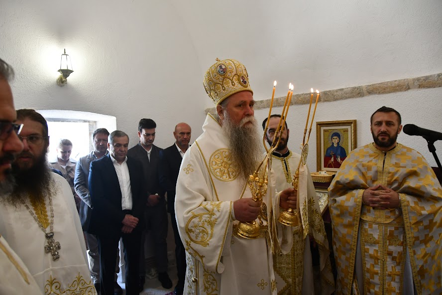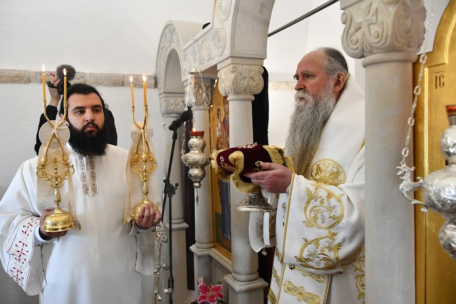Пред почетак Литургије Владика је обавио мало освећење обновљеног храма посвећеног Мрликијском Чудотворцу.