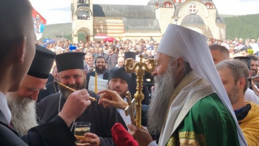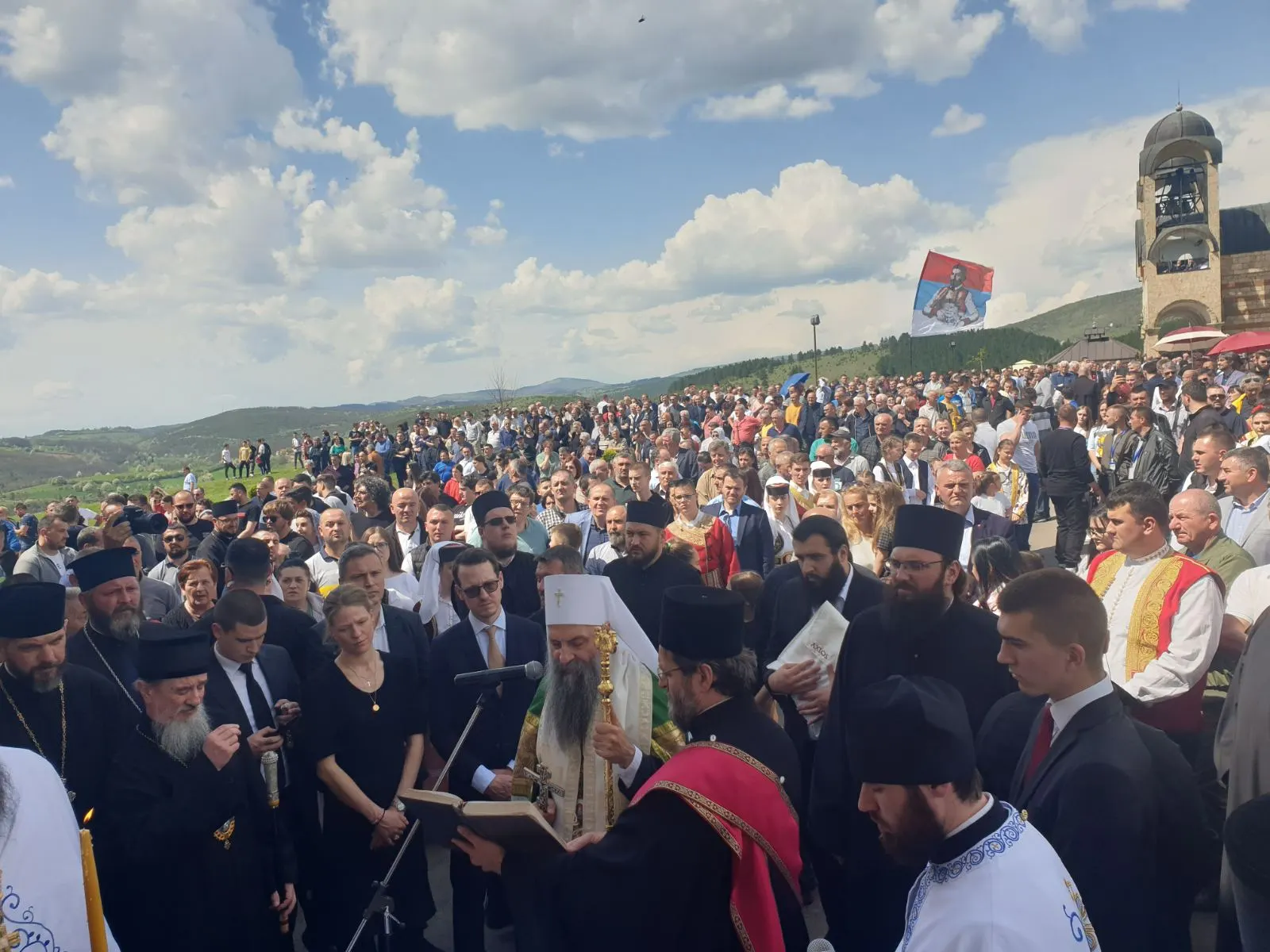 Ми знамо у Васкрсењу Христовом, у празнику који славимо и још увек га осећамо, да је Бог онај који побеђује нечастивог, али исто тако, браћо и сестре, ви сте најбољи сведоци, највидљивији сведоци да у васкрсавању Христовом непрестано у нама васкрсава светиња, васкрсавају светиње које увек имају последњу реч, а не оно што је несвето, не оно што се бори против светиње. Оно што се бори против светиње, бори се против самог себе, а ви борећи се за светиње, за светињу и за светост, борите се за самог Христа. У тој борби борите се и за оне који се боре против светиња. То је био ход ваш протеклих година, то је и оно што краси данас ваша лица, то је оно што силази са ових брда и самих небеса, то је оно што је Свети Сава учинио као свој рукосад и овде и у Милешеви, и у Светој Тројици, и у Острогу и на Цетињу, и у свакој другој светињи која краси ове православне просторе, хришћанске просторе. Борећи се за светињу, боримо се за истину.