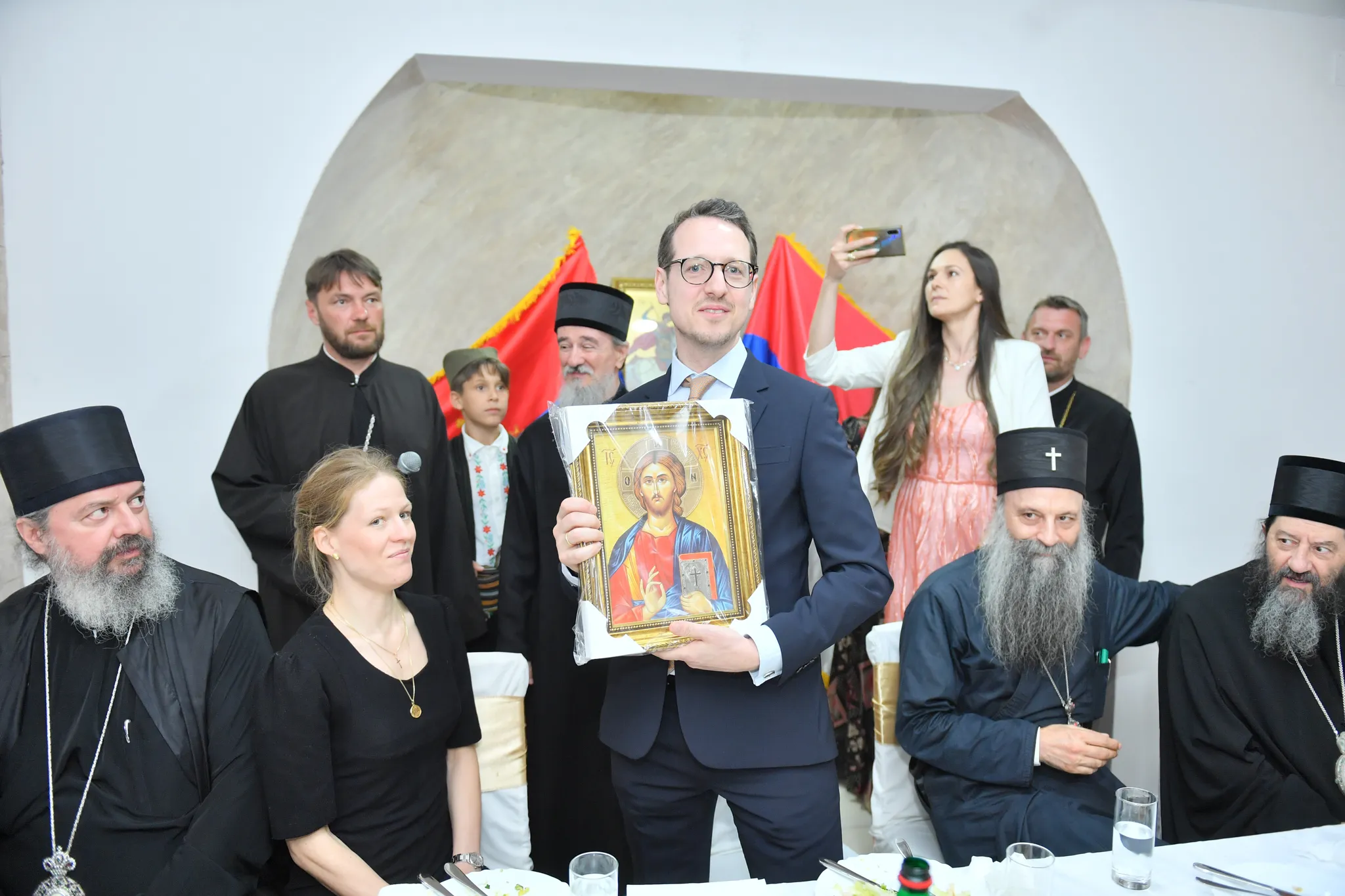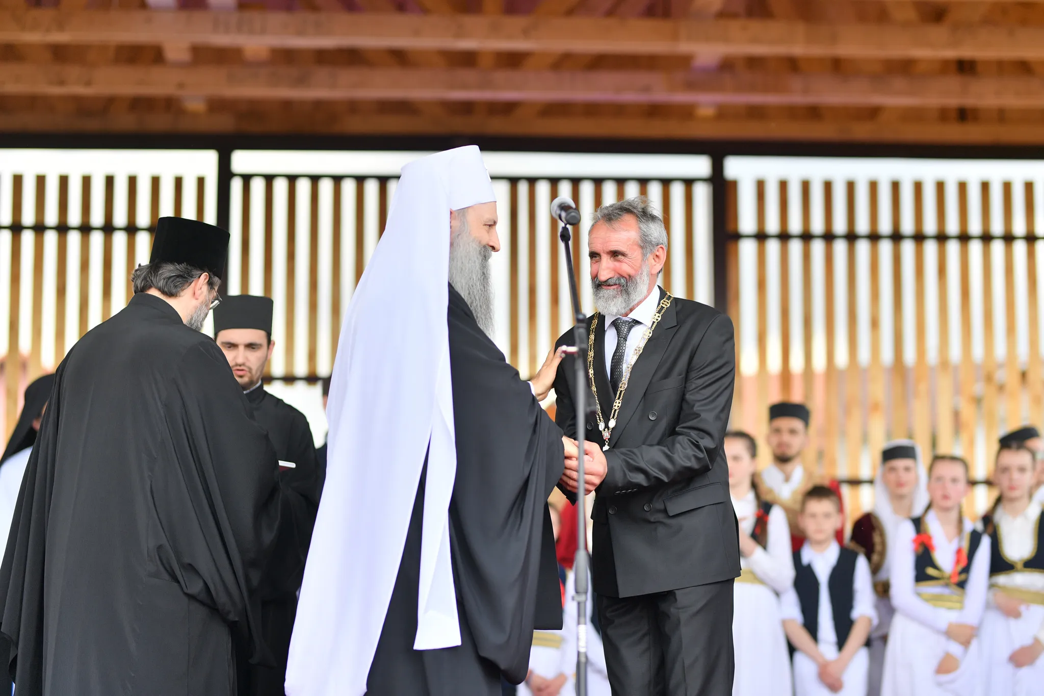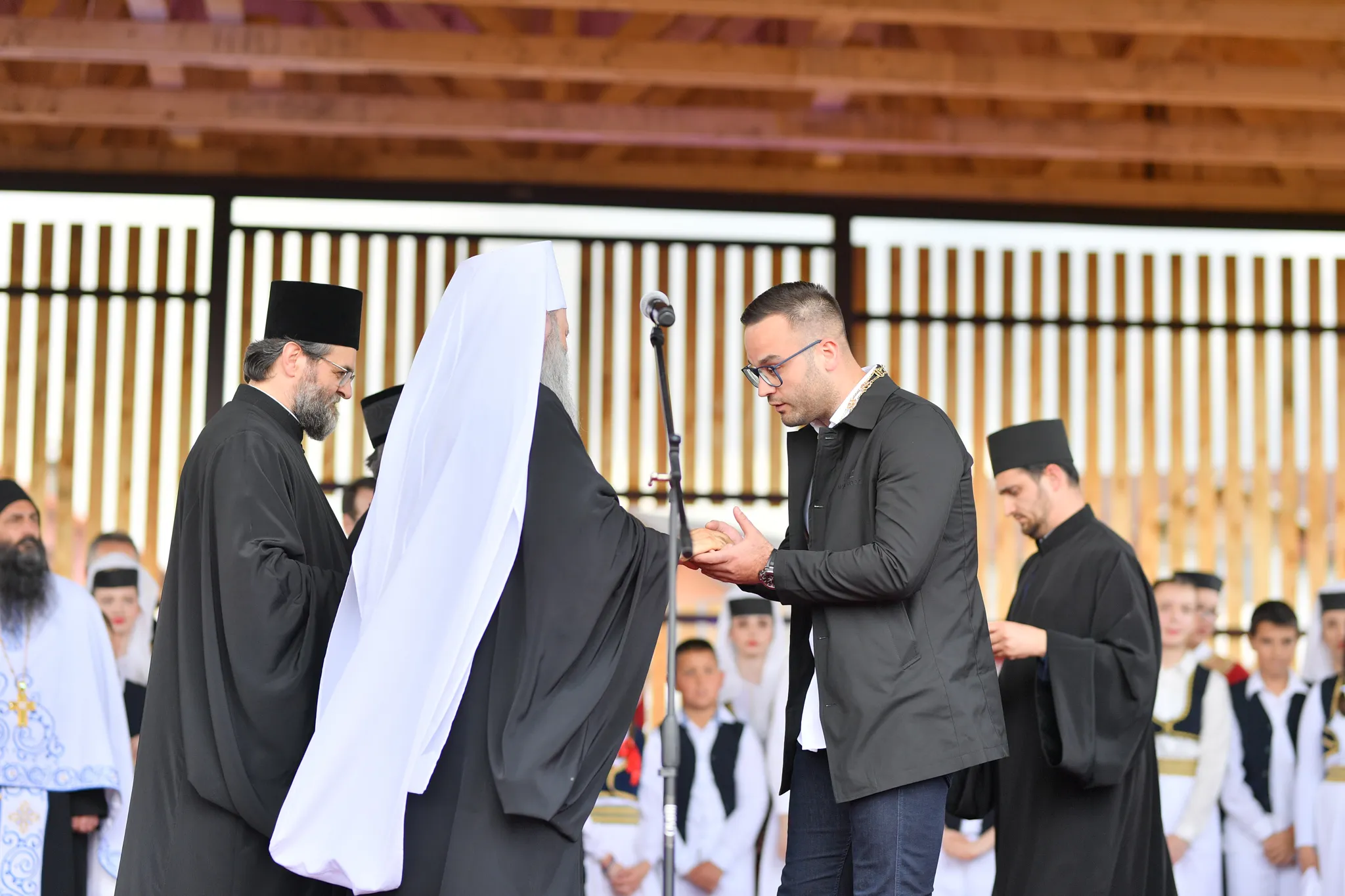 Након свечаног дочека Патријарх Порфирије је освештао црквено-народни дом, а потом је сабранима захвалио на топлом и величанственом дочеку и истакао:
