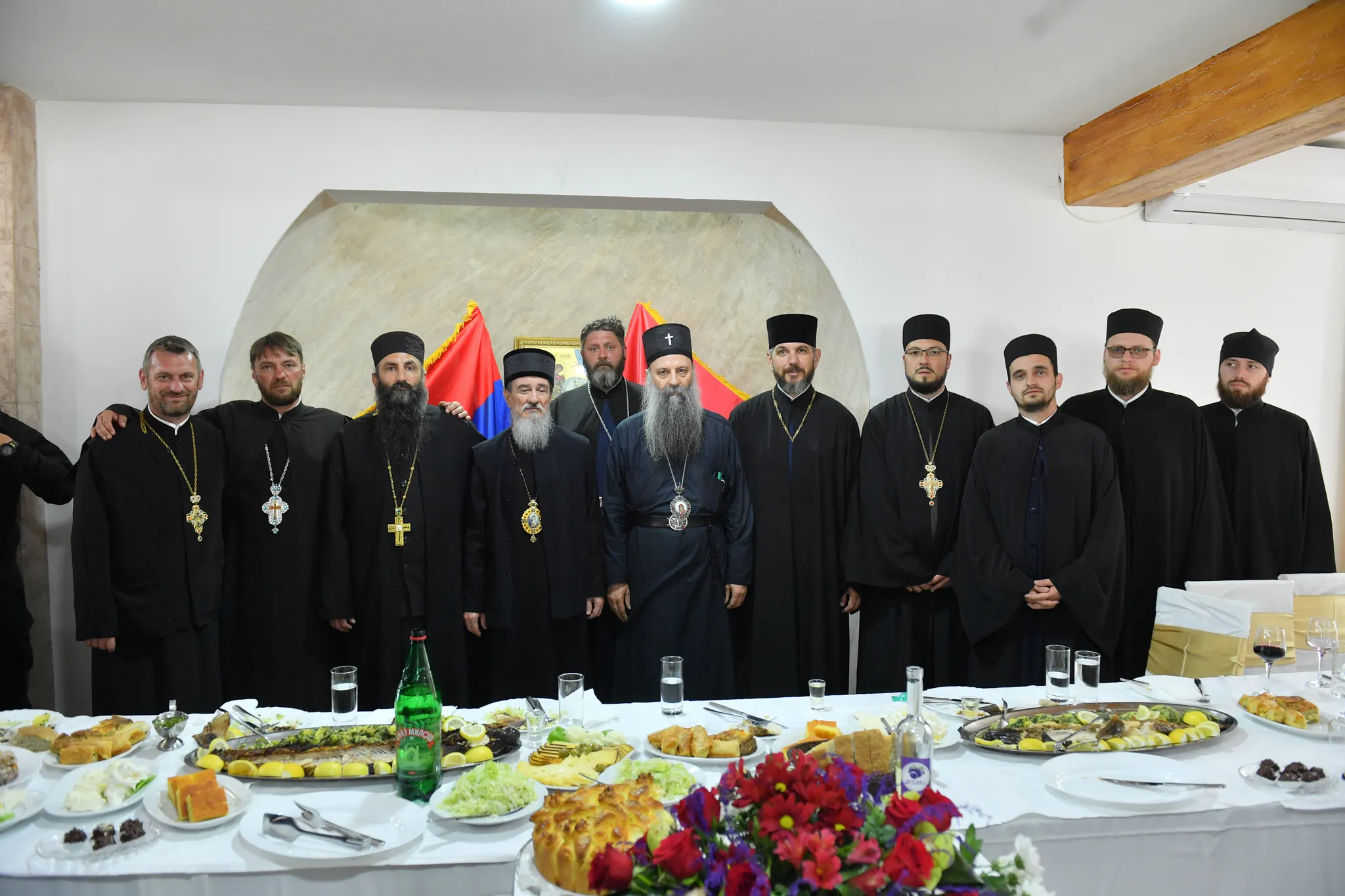 Након светог евхаристијског сабрања у манастиру Милешеви, Његова светост Патријарх српски г. Порфирије је заједно са отачаственим архијерејима дошао у Храм Светог великомученика Георгија на Гукама у Пљевљима. Испред храма приређен је свечани дочек где га је дочекао Његово преосвештенство Епископ милешевски г. Атанасије са многобројним верним народом.
