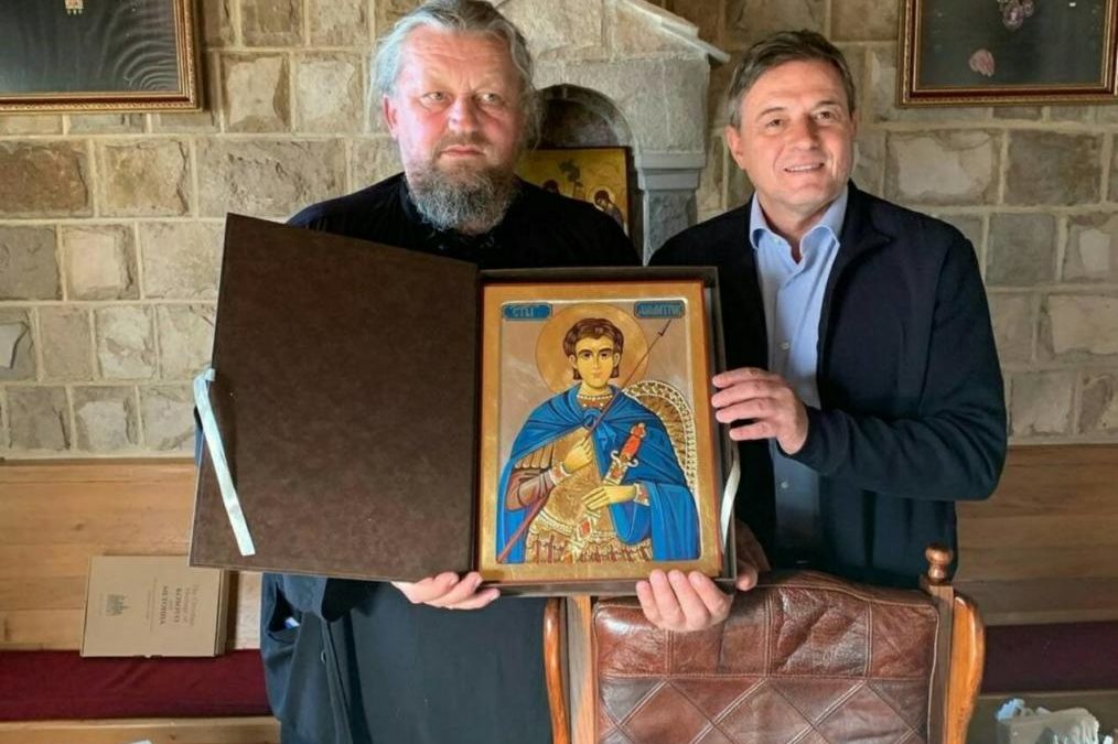 Игуман острошки о. Сергије је овом приликом подарио икону Светог великомученика Димитрија и пригодне поклоне легенди српског и југословенског фудбала.
