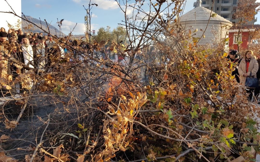 И као што су витлејемски пастири горењем дрвета победивши студен и хладноћу пришли да се поклоне Теби Богомладенцу, освети и домове наше огњем спасоносним, преобрази и све нас да се поклонимо рођењу Твоме, да се спасемо и Цркви Твојој, као дрвету живота, присајединимо, јер си Ти благ и човекољубац и Теби славу узносимо Оцу и Сину и Светоме Духу, свагда, сада и увек и кроза све векове. Амин.