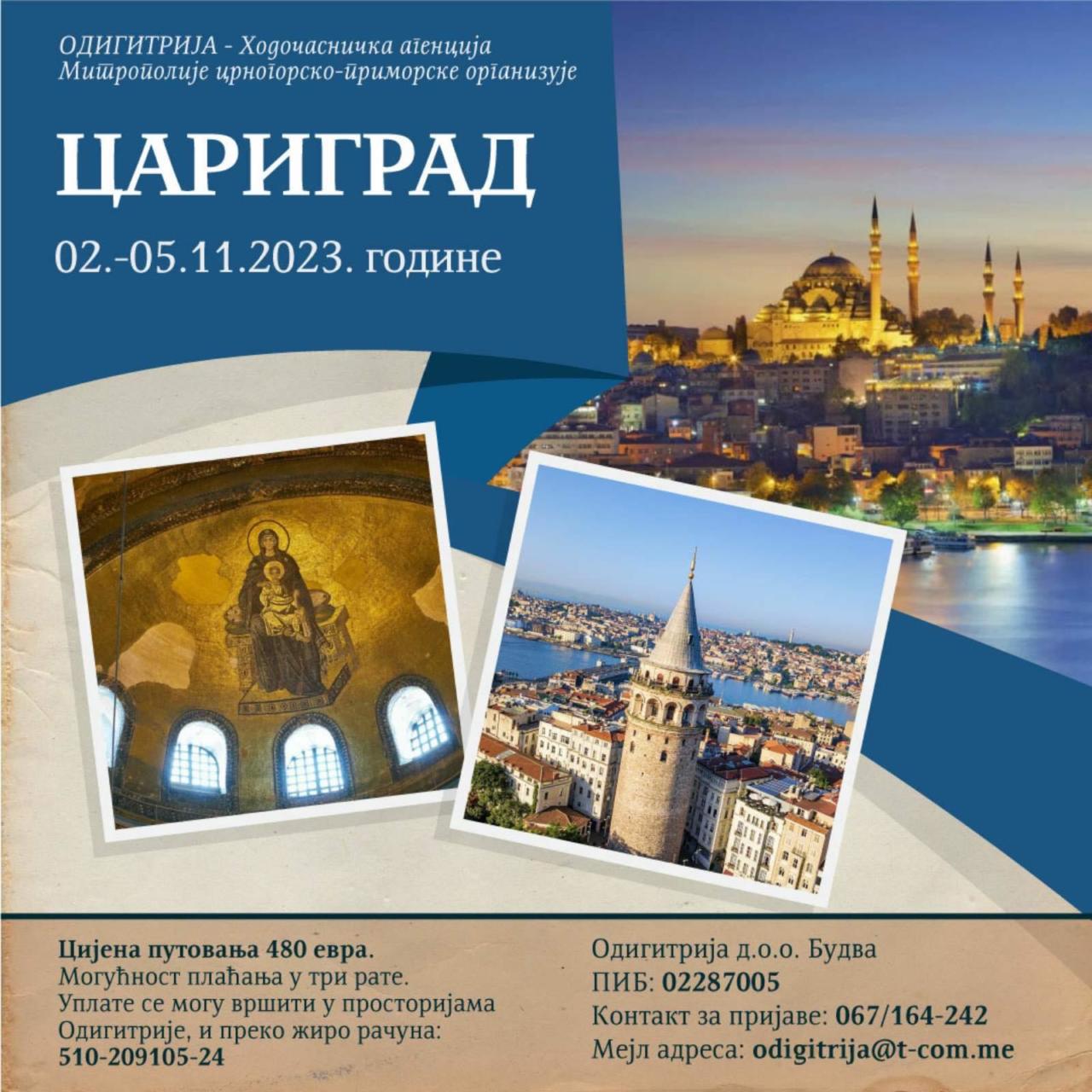 “Одигитрија” ходочасничка агенција Митрополије црногорско-приморске од 2. до 5. новембра организује поклоничко путовање у Цариград.