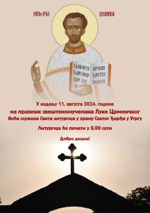 У недјељу, 11. августа, на празник свештеномуче4ника Луке Црмничког биће служена Света литургија у храму Светог Ђорђа у Утргу – Црмница, са почетком у 8 сати.