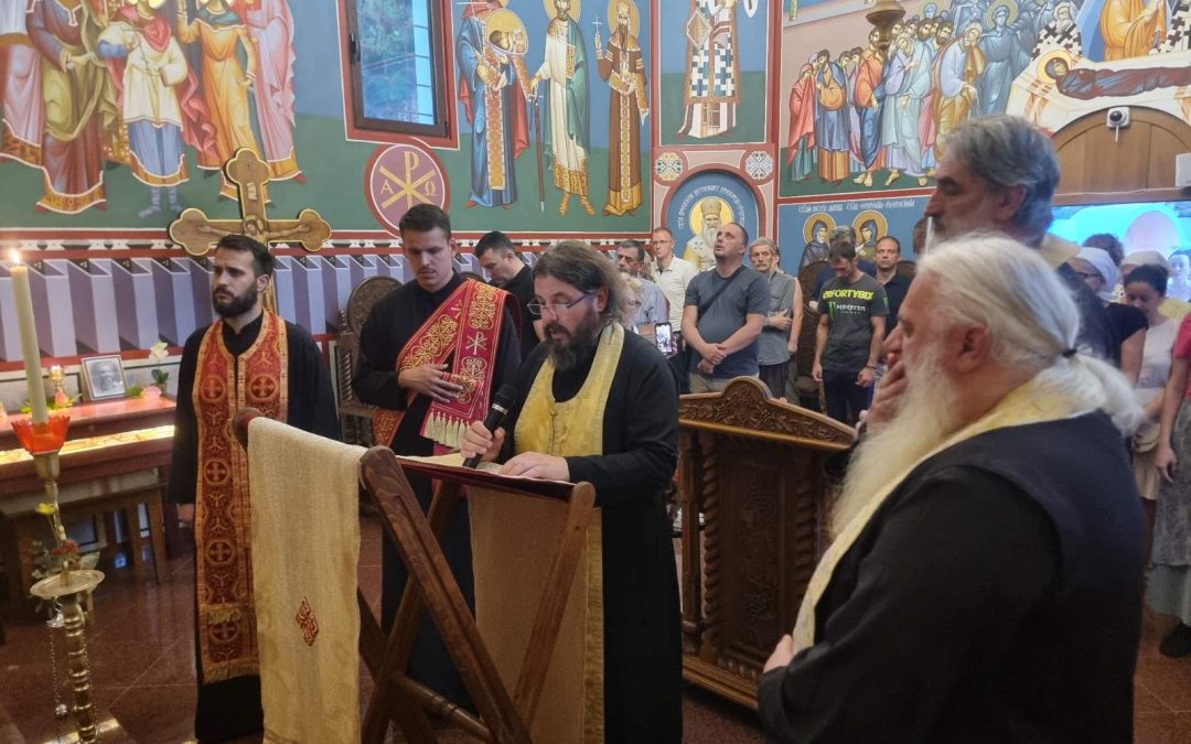 Након акатиста, одслужен је четрдесетодневни помен Слободану Голубовићу, фрескописцу овог светог храма. Потом се сабранима надахнутом бесједом обратио протојереј Никола Тодоровић, говорећи о Христовом Васкрсењу у контексту житија Преподобног Серафима Саровског и у контексту престављења покојног Слободана, који је дивним иконографским композицијама у овоме храму, на тајанствен начин спустио Небеса на земљу.