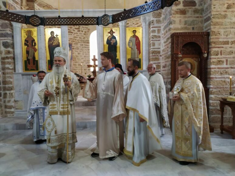 Тим поводом Свету архијерејску Литургију, која је почела у 8 часова, служе Њихова високопреосвештенства Митрополити рашко-призренски Теодосије и њемачки Григорије са свештенством и уз учешће вјерног народа.