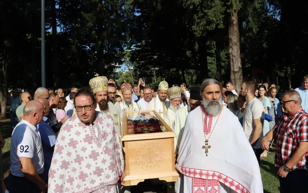 Током јутарњег богослужења, високопреосвећени и преосвећени архијереји, заједно са народом, дочекали су мошти Свете Ане, мајке Светог Василија, које је из Мркоњића допратио Митрополит Димитрије са свештеницима и свештеномонасима Епархије захумско-херцеговачке и приморске.