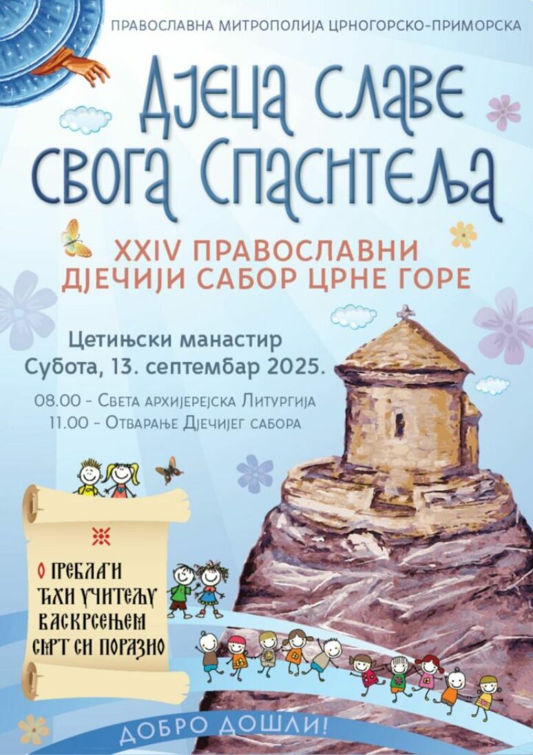 Двадесет четврти Православни дјечји сабор под слоганом „Дјеца славе свога Спаситеља“, одржава се данас у Цетињском манастиру.