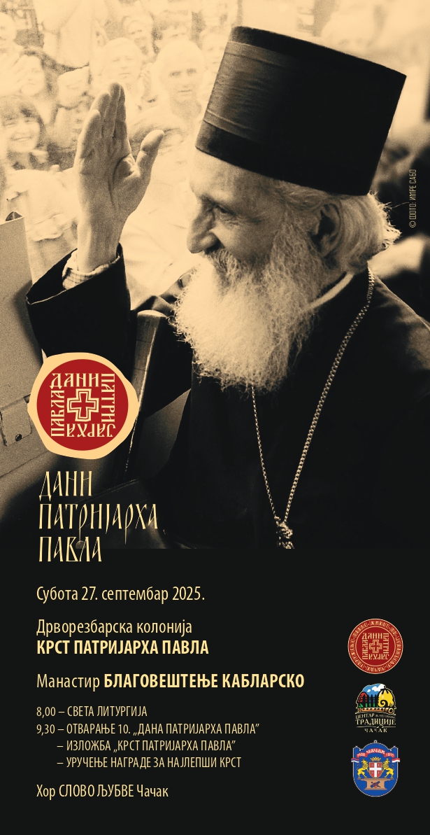 „Дани Патријарха Павла“ у Чачку са огранцима у Кућанцима, Гацку, Никшићу и Призрену, почеће 27. септембра, на празник Воздвижења Часног крста – Крстовдан, Светом литургијом у манастиру Благовештење кабларско у Овчар Бањи, са почетком у 8 часова.