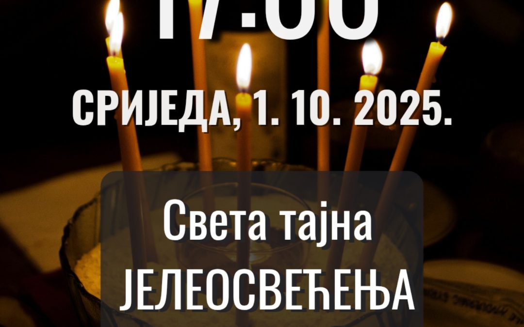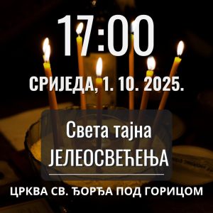 Света тајна јелеосвећења служиће се у сриједу, 1. октобра, у Цркви Светог Ђорђа под Горицом, са почетком у 17 часова.