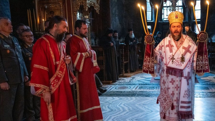 Његово преосвештенство Епископ липљански и војни г. Доситеј данас, 8. октобра 2025. године, на празник Преподобне Ефросиније и Светог Сергија Радоњешког, служио је Свету литургију у манастиру Хиландар, известила је ТВ Храм.