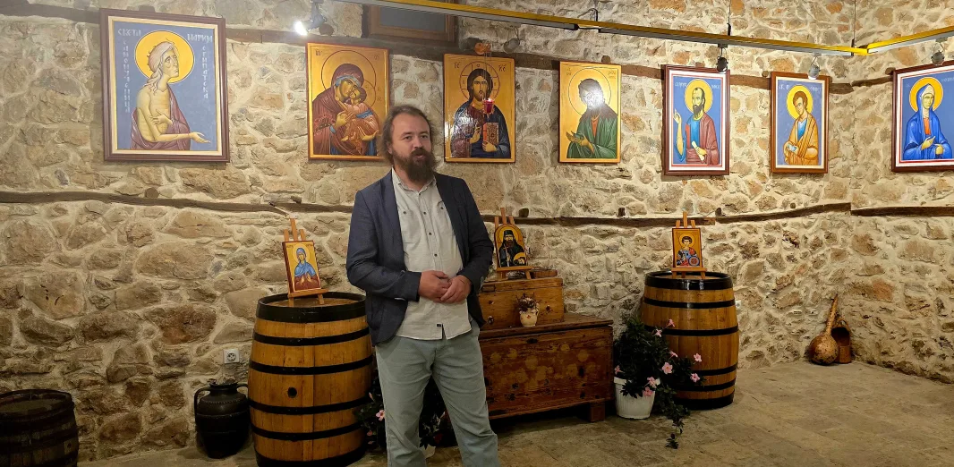 “То је једна старија црквица која је посвећена мајци Свете Богородице, која је заправо баба нашег Христа. И то је једна врста изложбе. Ово је покретна изложба а то је статична изложба која се кади сваке Литургије и коју људи могу да виде. Јер слика је више од речи. Реч дође и прође, некад је и не чујемо у цркви али очи виде оно што уши не чују”, додаје Мирослав.
