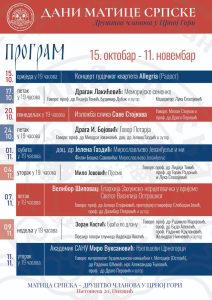 Овогодишња манифестација Дани Матице српске, која већ више од деценије окупља истакнуте књижевнике, умјетнике, научнике и музичаре из земље и региона, биће одржана у Никшићу од 15. октобра до 11. новембра.
