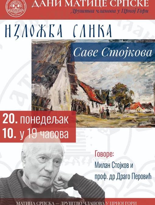 У оквиру Дана Матице српске-Друштва чланова у Црној Гори вечерас, 20. октобра, у Никшићу ће бити отворена изложба слика Саве Стојкова, са почетком у 19 часова