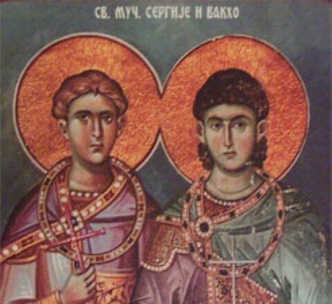 Ови свети и дивни мученици и јунаци вере Христове беху најпре први великаши на двору цара Максимијана. И сам их цар уважаваше много због храбрости, мудрости и верности. Али кад чу цар, да су ова два великаша његова хришћани, промени љубав своју према њима на гнев. И једном када беше велико жртвоприношење идолима цар позва Сергија и Вакха, да заједно с њима жртве принесу, али они отворено отказаше цару послушност у томе.
