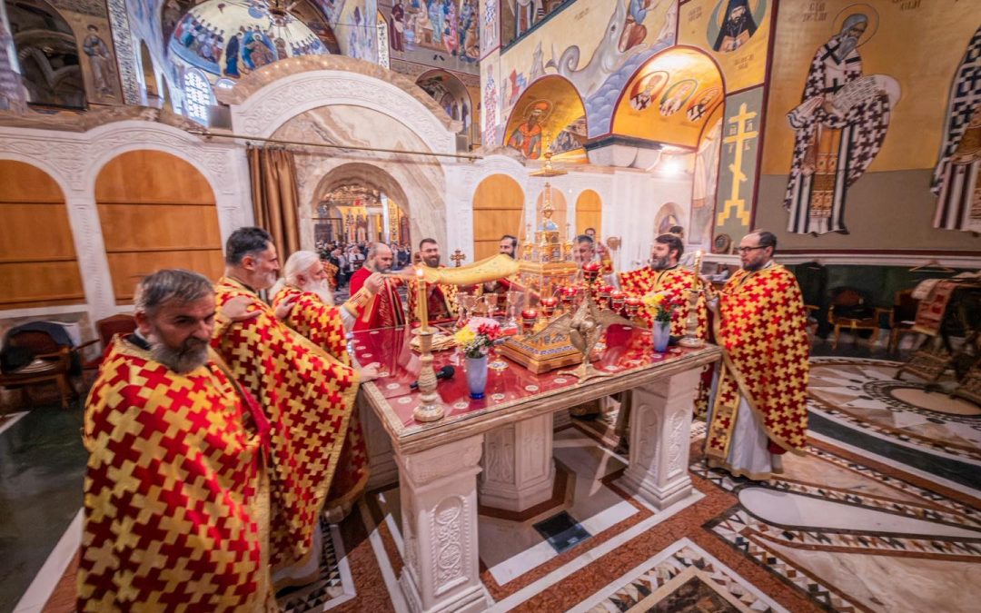 На дан, када наша Света Црква прославља Светог апостола и јеванђелиста Луку и Светог Петра Цетињског, у Саборном храму Христовог Васкрсења у Подгорици, одслужена је Света Литургија којом је предстојао јереј Велимир Бугарин.