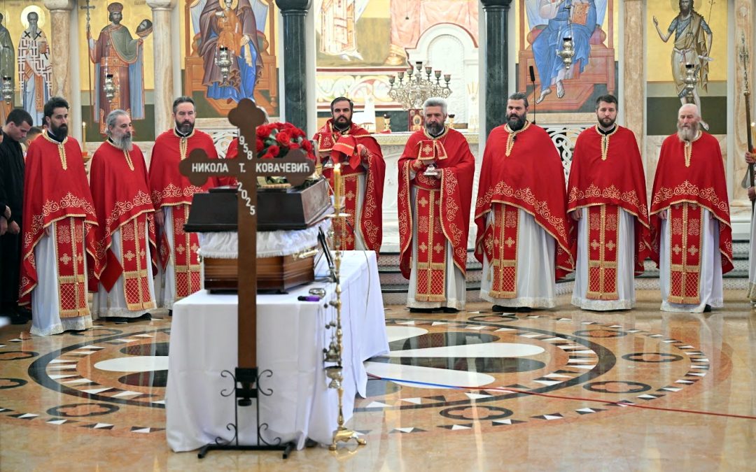 „А данас на ову Свету службу нас је сабрао и наш драги Никола Ковачевић. У овај дан у који његово тијело предајемо мајци земљи, толико је природно и очекивано да је он у овој светињи данас, као што је био свакога дана свога живота, када је то могао и био у прилици. И да нас и данас, као и сваки пут, поготово нас са стране који смо овдје ређе долазили, заједно са овом светињом и са братством овога светога храма, угрије добротом, својом љепотом, својом љубављу и ширином свога срца, да у овој светињи направи мјесто за свакога ко у њу долази. Он који је последњих дана и сати свога живота био житељ оног земаљског Јерусалима и ходио стопама које су освештане Господом нашим, Његовим животом и Његовим ходом овдје на земљи, из тога земљског Јерусалима преселио се у онај вјечни. У онај вјечни град коме нијесу страшни ни пожари, ни поплаве, ни болести, ни страдања, нити ишта што је зло и нечисто улази у тај град небески, град вјечни, град Божији, у Царство небеско.“