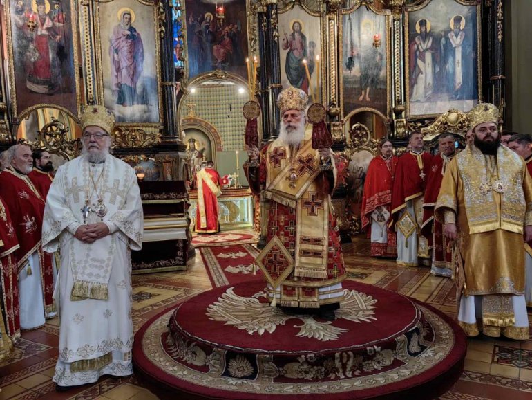 Светом архијерејском литургијом началствовао је Митрополит преспанско-пелагонијски Петар уз саслужење Митрополита сремског Василија, Епископа осечко-пољског и барањског Херувима, многобројног свештенства, монаштва, ђаконства, верног народа, ученика и професора Богословије на челу са ректором, протојерејем-ставрофором Јованом Милановићем.