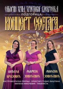 У крипти Саборног храма Христовог Васкрсења у Подгорици, у суботу, 22. новембра 2025. године, са почетком у 19 часова, сестре Анђела Брајовић, Марија и Милена Јовићевић одржаће концерт, уз инструменталну пратњу оркестра студија „Љуштина” и Милене Никочевић, пијанисткиње.