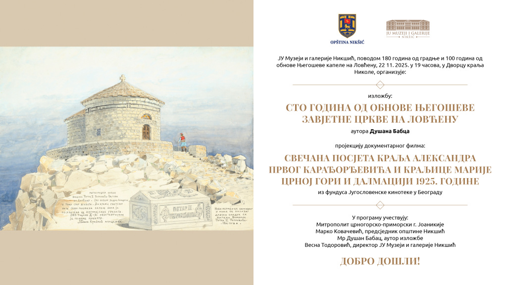 Поводом 180 година од градње и 100 година од обнове Његошеве капеле на Ловћену, ЈУ Музеји и галерије Никшић организује изложбу „Сто година од обнове Његошеве завјетне цркве на Ловћену“, аутора мр Душана Бабца и пројекцију документарног филма „Свечана посјета краља Александра I Карађорђевића и краљице Марије Црној Гори и Далмацији 1925. године“ из фундуса Југословенске кинотеке у Београду.