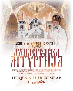 У недјељу 23. новембра 2025. године, у Саборном храму Христовог Васкрсења у Подгорици, Свету архијерејску литургију служиће Његово високопреосвештенство Архиепископ диселдорфско-берлински и Митрополит њемачки г. Григорије са свештенством и вјерним народом, са почетком у 9 часова.