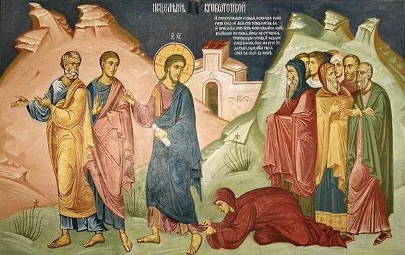 А кад иђаше Исус, гураше Га народ. И беше једна болесна жена од течења крви дванаест година, која је све своје имање потрошила на лекаре, и ниједан је није могао излечити. И приступивши састраг, дотаче се скута од хаљине Његове, и одмах престаде течење крви њезине. Непрегледне гомиле народа пратиле су Христа чим је изишао на обалу вративши се из Гадаре. Јер се каже: сви га очекиваху. И народ се тискаше око Њега; свак је желео да буде у близини Његовој, да би чуо необичне речи и да би видео необична дела, неко због духовне глади а неко из радозналости. Ту се десила и ова болесна жена, болесна од нечисте болести. Течење крви код жене, и кад је природно, јесте један бич што укроћава страсти и приводи жену смирењу. А стално течење крви, кроз пуних дванаест година, заиста је као пакао од муке, од стида и од нечистоте. Жена се ова лечила, и лечећи се потрошила све своје имање на лекаре и лекарије. Но помоћи није било, јер од лекара ниједан је није могао излечити. Замислите њено посведневно чишћење и преоблачење; њену бригу и њен стид! Изгледало је као да је њу Бог само зато створио, да из ње тече крв, и да она дотраје своје дане на земљи у заустављању крви која се није дала зауставити, у муци којој није било лека и у стиду који се није могао исказати. Тако се и нама чини у свакој дуготрајној болести. Но, уствари Бог је промишљао о њој као што промишља о свакој Својој твари. Њена болест је била на њено душевно спасење а на велику славу Божју. Ако се само дотакнем хаљина његових оздравићу, говорила је она сама себи гурајући се у гомили народа да би дошла до Христа. Таква је била вера ове жене. Она је раније имала веру и у лекаре којима је ходила, но та јој вера није помогла ништа. Јер сама вера није довољна, ако онај у кога се верује нема моћи да помогне. Нека би, дакле, замукли сви они који по своме крајњем незнању и неверовању говоре о сугестији и аутосугестији у јеванђелским чудима – Ова смирена и намучена жена нема ни смелости ни наде да би изашла пред Христа и објаснила Му своје муке и потражила помоћи. Како би то она и могла од стида учинити пред толиким народом? Њена проклета болештина такве је природе, да кад би је јавно исказала изазвала би гађење, и осуду, и подсмех. Зато она и прилази одостраг ка Господу, и дотиче се Његове хаљине.