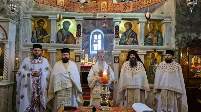 Честитајући празник и славу свим учесницима Божанске литургије Митрополит Атанасије је у пастирској беседи, поред осталог, рекао: – У овој Божанској литургији могли смо на више места приметити да се позивамо на то да се угледамо и да се придружујемо онима који су у овој божанској служби. Рекли смо и то да са оним б ожанским силама које поју на небу такође и ми, Црква, овде на земљи учествује у истој песми, у истој молитви.
