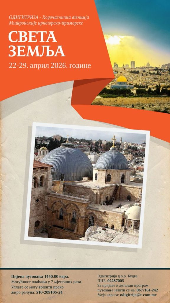 Одигитрија- Ходочасничка агенција Митрополије црногорско-приморске 22. априла 2026. године организује поклоничко путовање у Свету земљу.