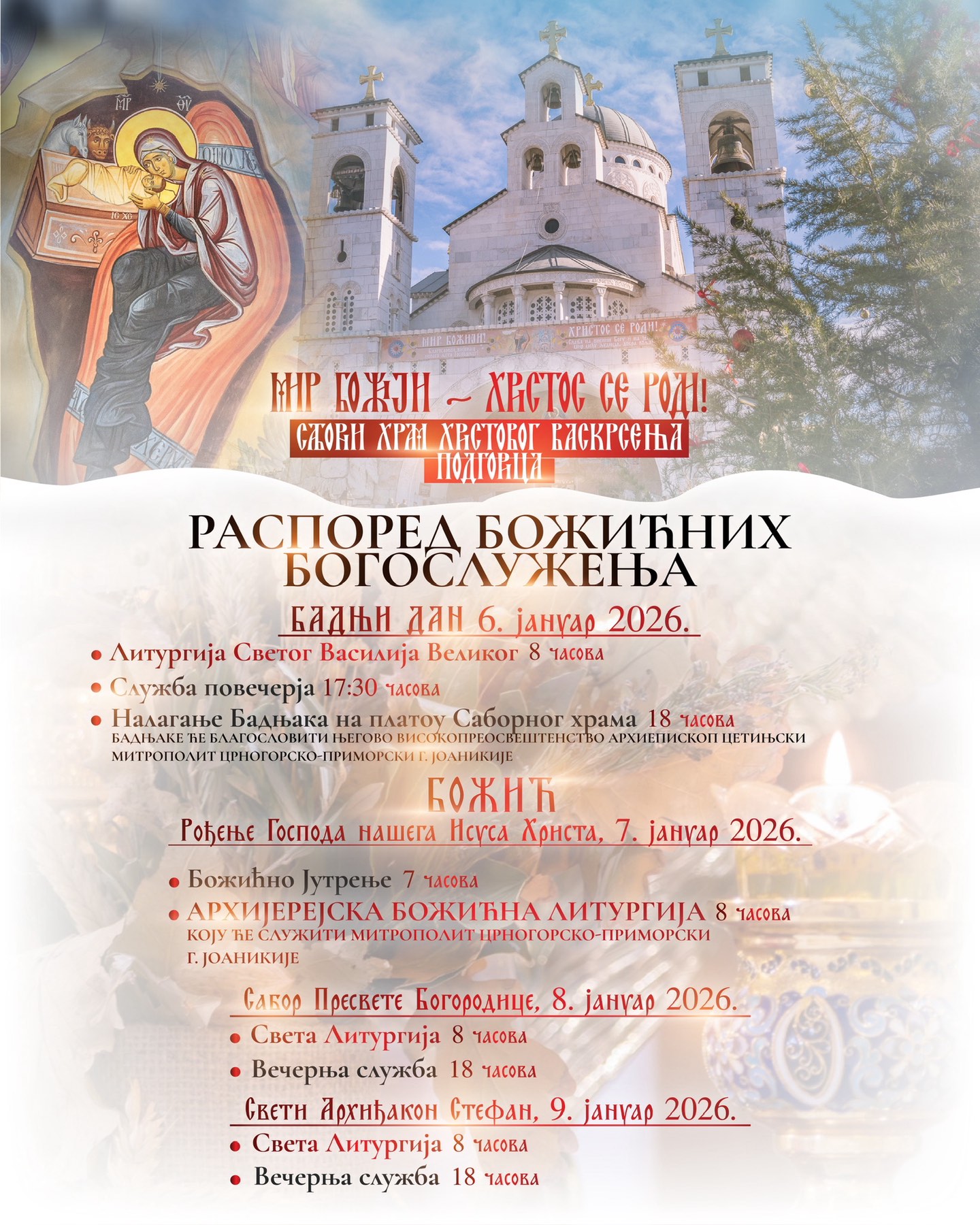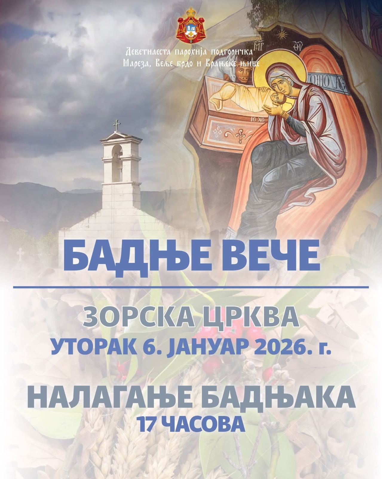 Бадњаке ће благословити Митрополит црногорско-приморски г. Јоаникије.