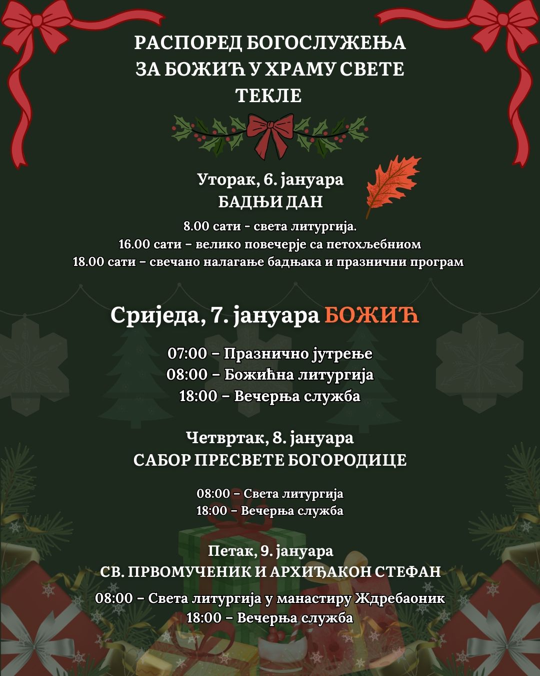 Благосиљање и налагање бадњака у Храму Светог Ђорђа и Светих новомученика момишићких обавиће се у 15 часова.