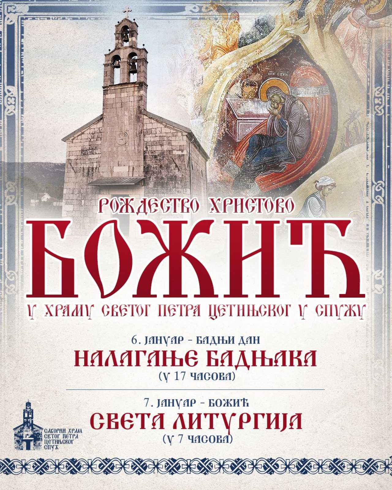 Налагање бадњака испред Храма Светог Петра Цетињском обавиће се у 17 часова.