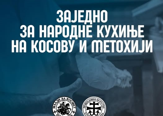 Млади за Космет и Православно братство „Ђурђевац“ позивају све људе добре воље и великог срца да, у складу са својим могућностима, узму учешћа у овој акцији, јер помажући рад Народних кухиња – директно помажу наше најугроженије.