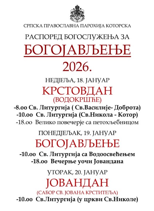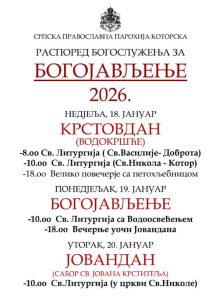 Распоред богослужења за Крстовдан, Богојављење, Сабор Светог Јована Крститеља и пливања за Часни крст у Митрополији црногорско-приморској