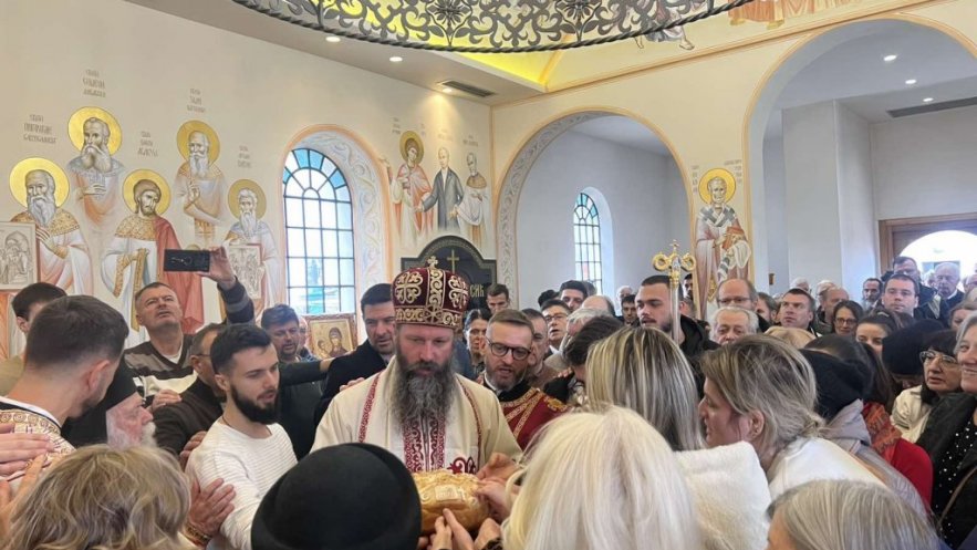 Преосвећени владика Иларион осветио је славски колач и у беседи се обратио верницима истакавши значај имена Светог Трифуна, његову деликатност и раскош у једноставности, као пример хришћанске пажње и осетљивости према другима. Нагласио је да једноставни људи, упркос скромности, својим понашањем и отвореним срцем одражавају „Божију раскош“. У духу празника, подсетио је верне на важност поста и заједничког оброка са Богом, као прилике да се духовно повежемо и учествујемо у вечном животу.