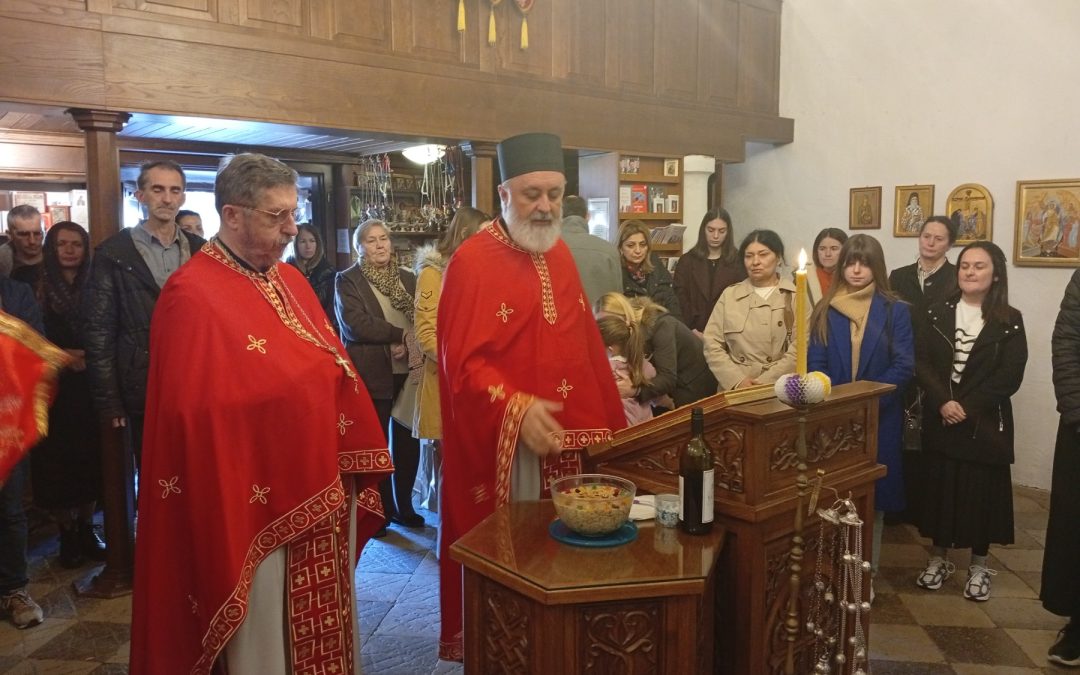 Потом су свештенослужитељи освештали кољиво у част Св. Теодора Тирона.