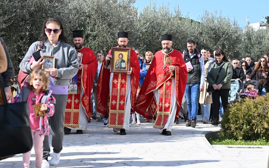 Свечана литија је, како је и најавио отац Слободан, на крају Свете литургије прошла око Саборног храма Светог Јована Владимира. Дјеца и њихови родитељи са иконама светаца Божијих, свејдочили су данас побједи православља над иконоборством.
