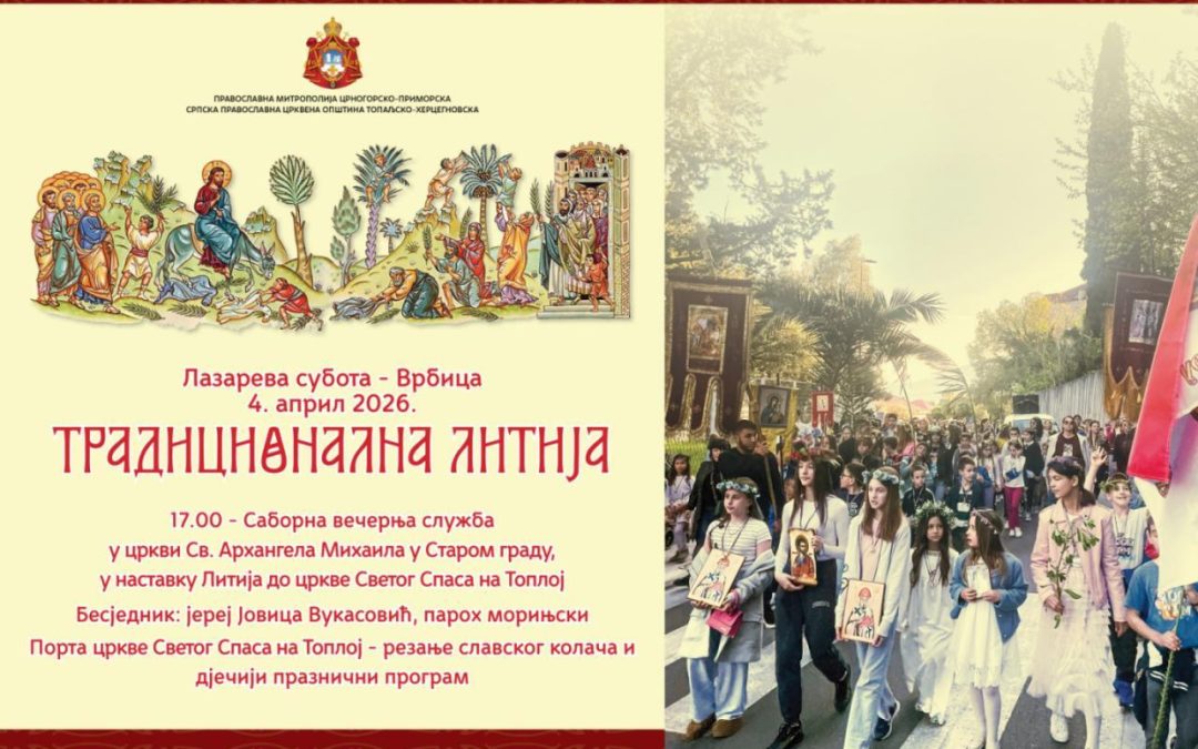 Српска православна црквена општина топаљско-херцегновска на Лазареву суботу, 4. априла, организује традиционалну литију кроз Херцег Нови.