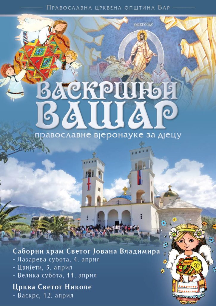 У Саборном храму Светог Јована Владимира у Бару, васкршњи вашар ће се одржати на Лазареву суботу, Цвијети и Велику суботу, а у цркви Светог Николе у Старом Бару вашар ће бити одржан на Васкрс, 12. априла.
