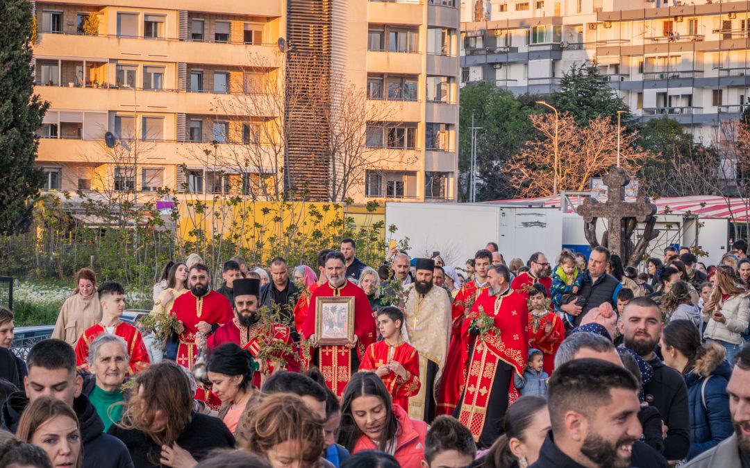 Молитвено сабрање у навечерје Цвијети у подгоричком Саборном храму било је испуњено радошћу празника, љепотом дјечјег учешћа и живим осјећањем да Црква, из године у годину, корача истим оним путем којим је Господ ишао ка Јерусалиму — путем љубави, смирења и жртве, који води ка свјетлости Васкрсења.