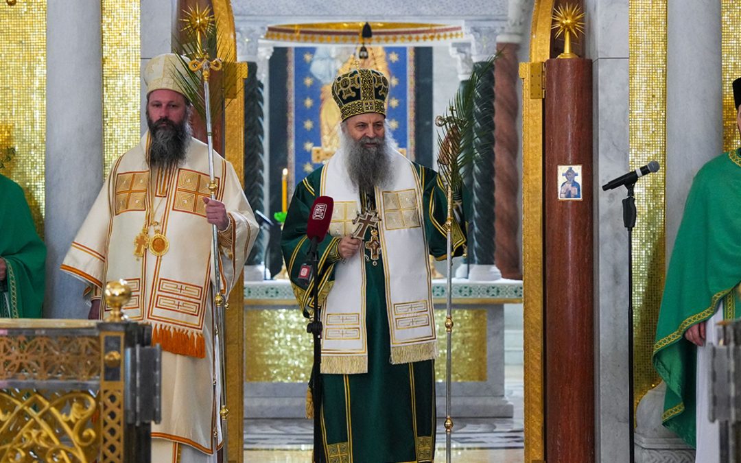 – Ево, праћен мноштвом људи Господ иде у свети град Јерусалим и то иде на магарету, хотећи да покаже да Његово царство није одавде, него да је то царство Божје, да је царство Његово царство одозго и оно силази међу нас да бисмо ми могли да постанемо грађани и житељи тог царства. Силази међу нас тако што је Господ постао све што ми јесмо, поистоветио се са нама у свему и по свему, осим у греху. Стога иде у Јерусалим да се са нама поистовети и у смрти, да би ту смрт разорио, да би уништио највећег и последњег нашег непријатеља, да би нам даровао живот вечни загрливши нас и чинећи да ми будемо део Његовог тела, део Његове Цркве, чинећи нас да будемо део Његовог Царства – део је литургијске беседе Његове светости Патријарха српског г. Порфирија, одржане на Цвети у заветном храму српског народа на Врачару.