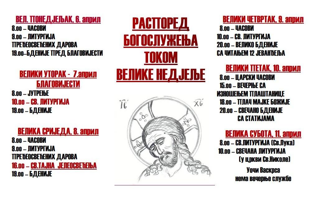 Распоред богослужења током Страсне седмице у Цркви Светога Николе у Котору